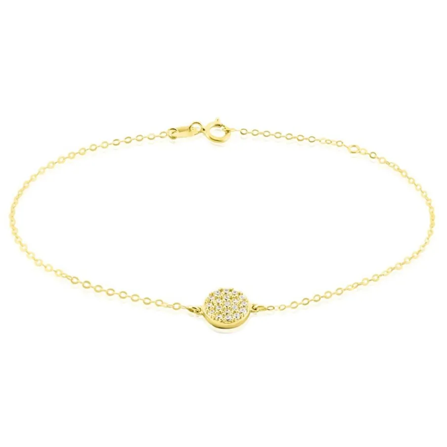 Bracelet Or Jaune 375/1000 Pastille Ronde Oxyde De Zirconium Maille Forçat 18cm