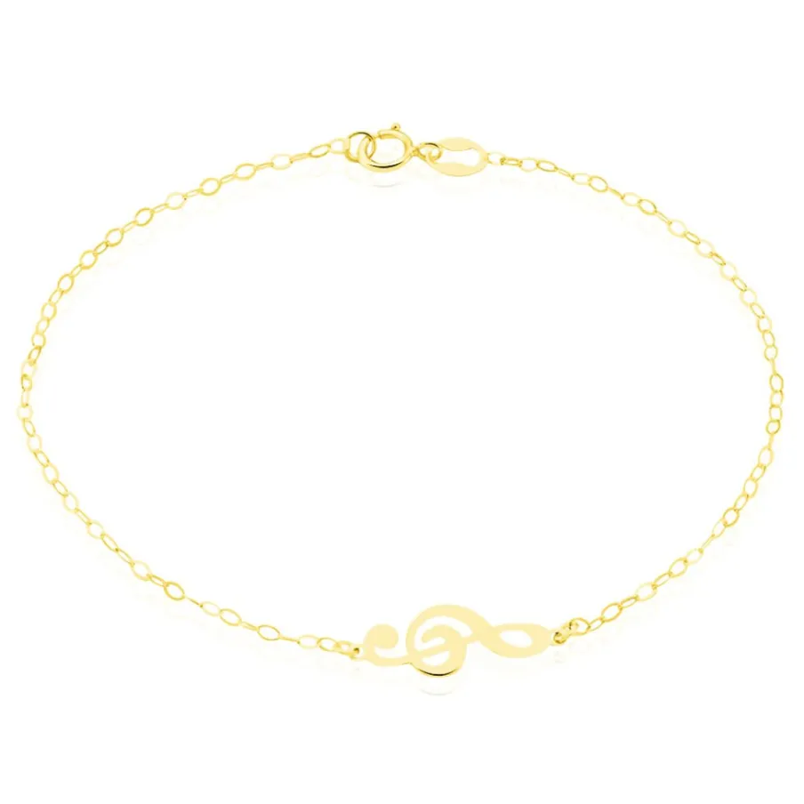 Bracelet Or Jaune 375/1000 Motif Clef De Sol 18cm