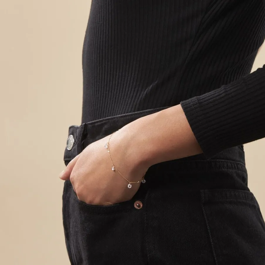 Bracelet Or Jaune 375/1000 5 Oxydes De Zirconium Perces 16+2 Cm
