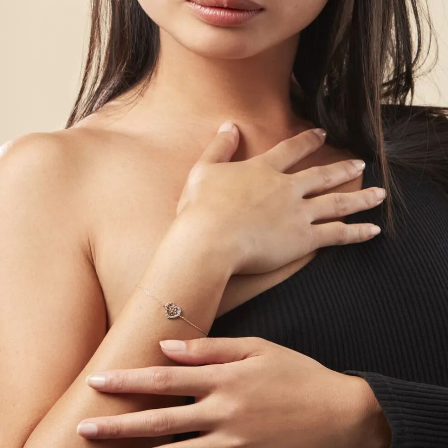 Bracelet Or Jaune 375/1000 Arbre De Vie Forme C艙ur Pavage Diamants Maille Forçat 18cm