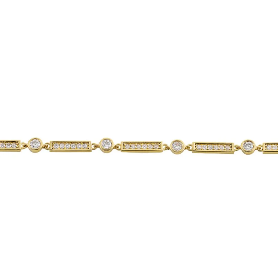 Bracelet Plaque Or Jaune Maille Fantaisie Oxydes De Zirconium 20cm