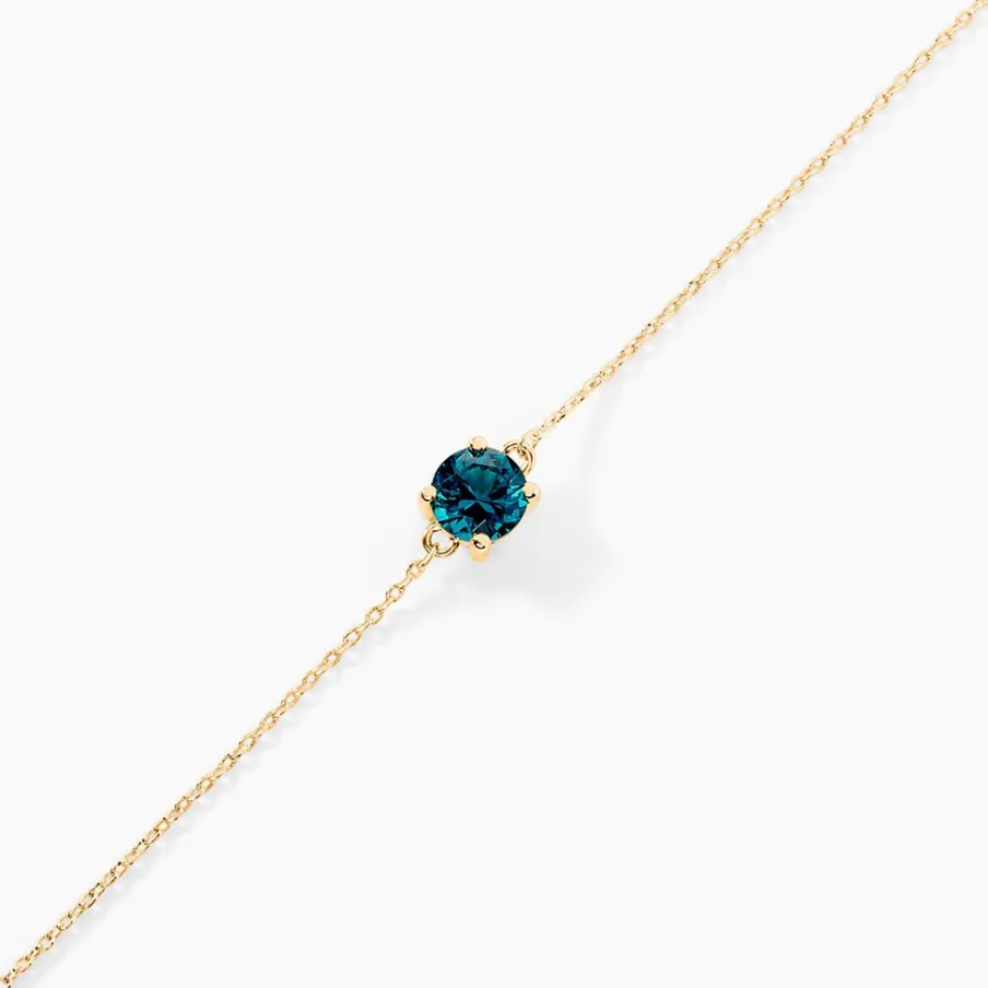 Bracelet Plaqué Or Jaune Oxyde De Zirconium Bleu 6mm 4 Griffes Maille Forçat 19cm