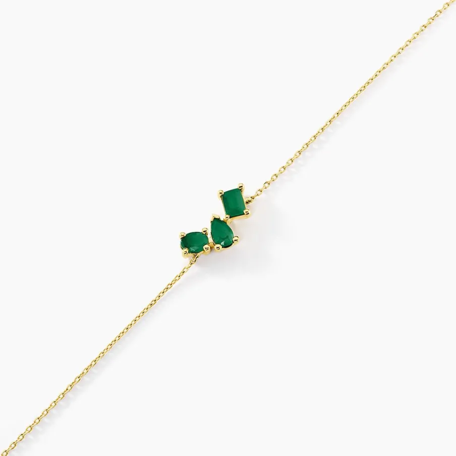 Bracelet Or Jaune 375/1000 Trilogie Emeraude Serti Griffes Maille Forcat 16+2cm