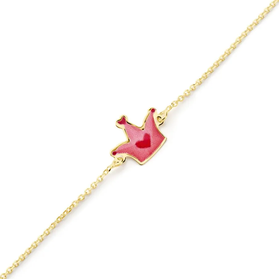 Bracelet Or Jaune 375/1000 Motif Couronne Avec Petit C艙ur Rose Central Smalto Maille Jaseron 12+2cm