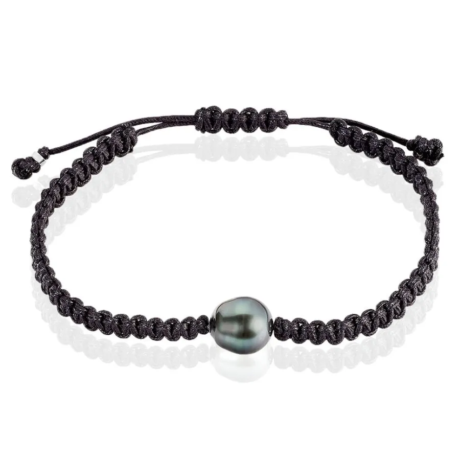Bracelet Or Blanc 375/1000 Perle De Culture Mers Du Sud Tahiti 9/10mm Cerclée