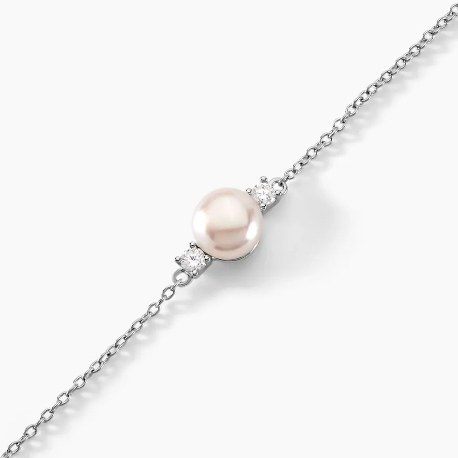 Bracelet Argent Blanc 925/1000 Perle De Culture 7-7.5mm Et Oxydes De Zirconium 18.5cm