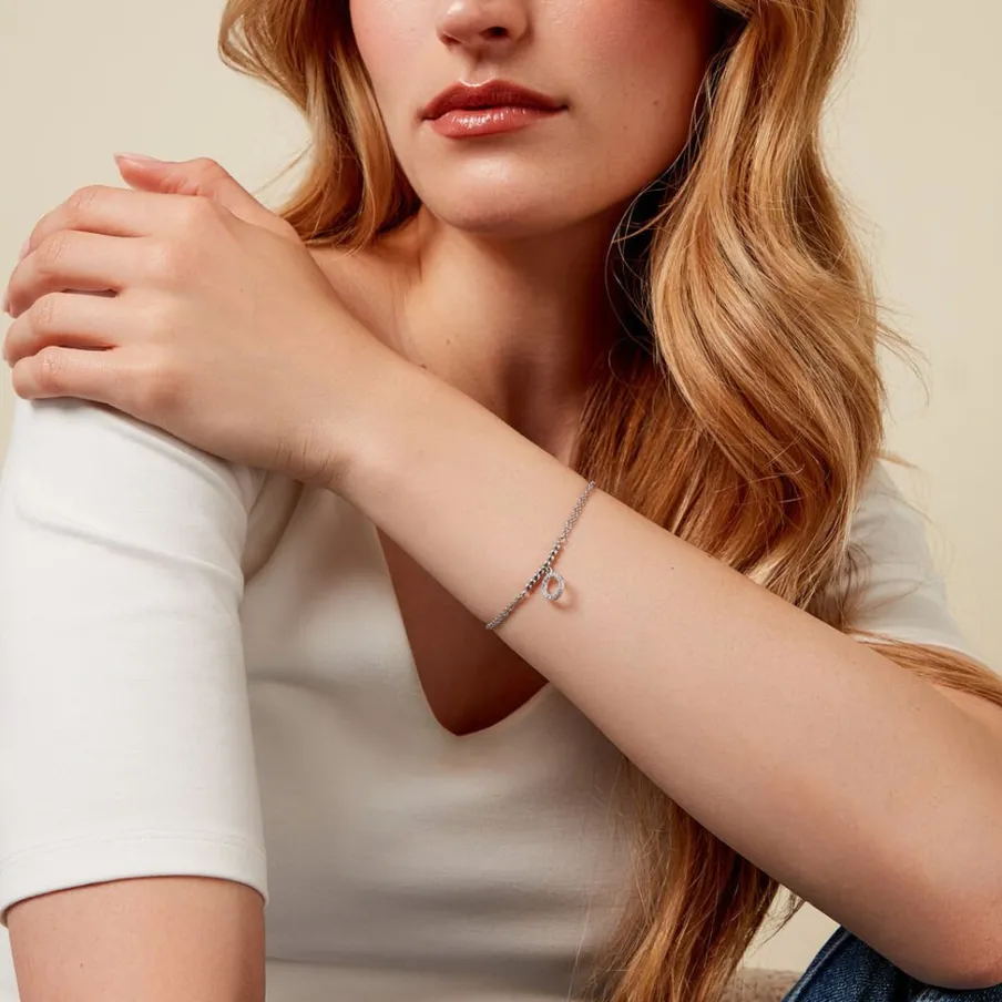 Bracelet Argent Blanc 925/1000 Boules Et Pampille Cercle Ajoure Oxydes De Zirconium Double Maille Forçat 16+3cm