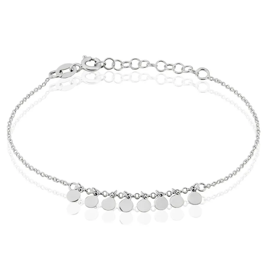 Bracelet Argent Blanc 925/1000 Pampilles Pastilles Maille Forcat 18.5cm