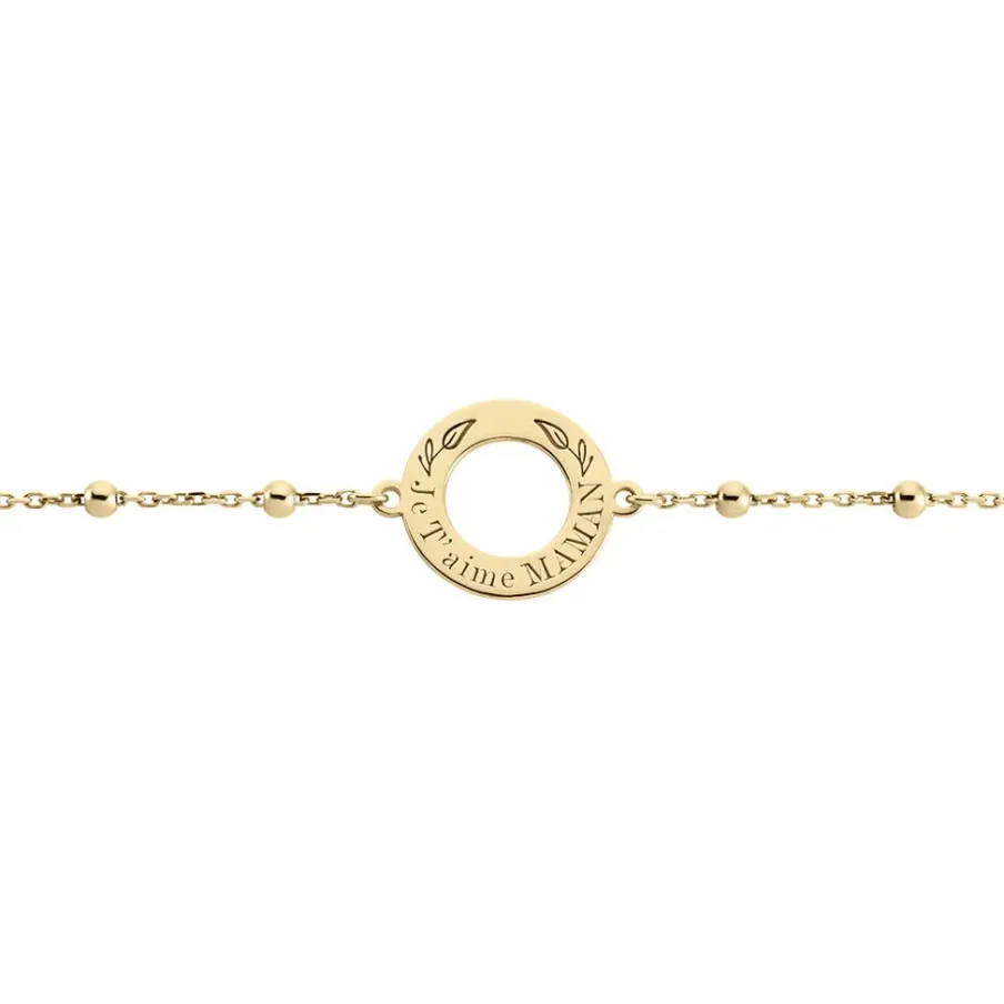 Bracelet Plaqué Or Jaune Cercle Message Je T’aime Maman Maille Forcat Et Boules 19cm