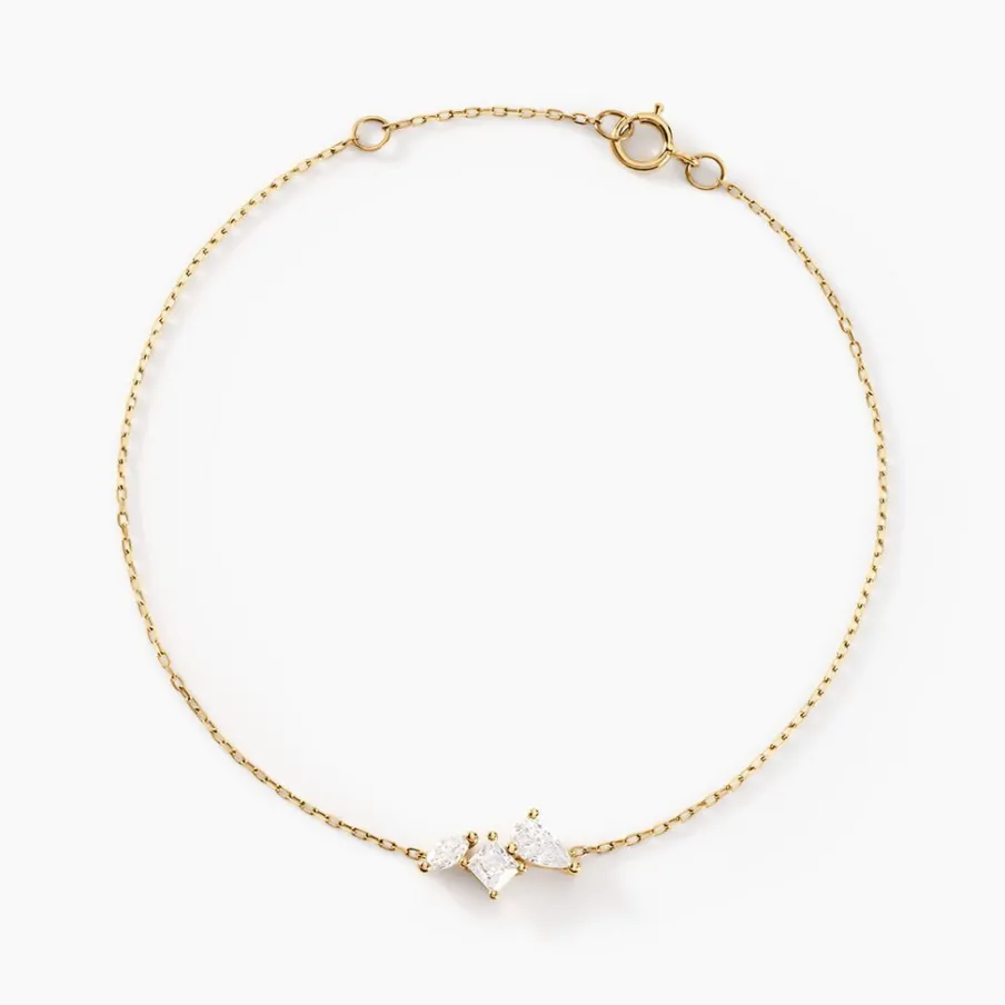 Bracelet Or Jaune 375/1000 Multipierres Oxyde Zirconium Poires Carrees Et Navettes Serti Griffes Forcat 16+2cm