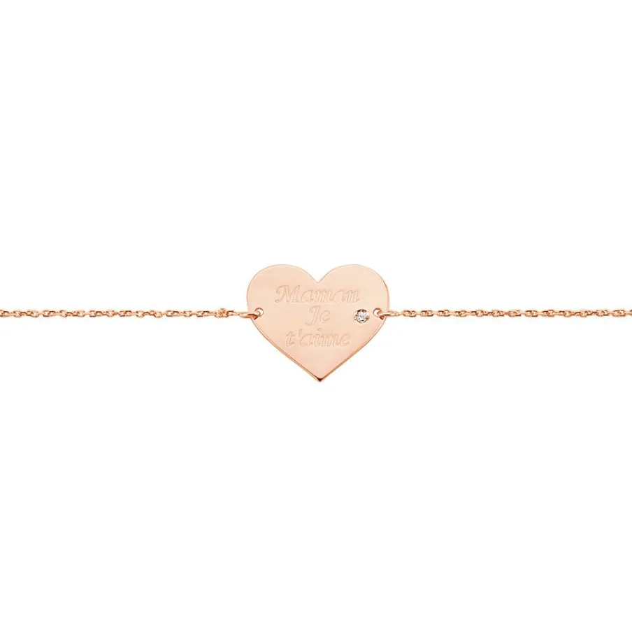 Bracelet Or Rose 375/1000 C艙ur Plein Message Maman Je T’aime Oxyde De Zirconium 18cm