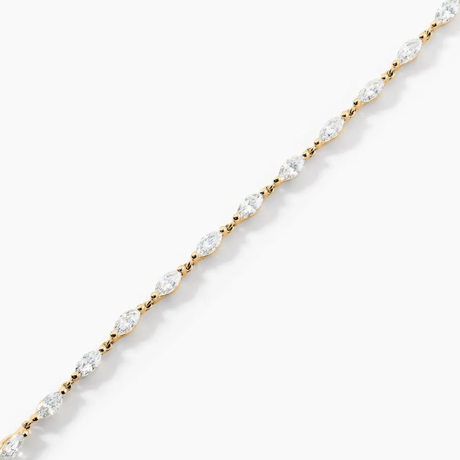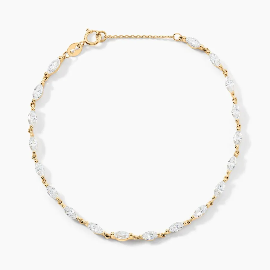 Bracelet Or Kaune 375/1000 Riviere Navettes Oxyde De Zirconium Sertis 2 Griffes Maille Forcat 16+2Cm