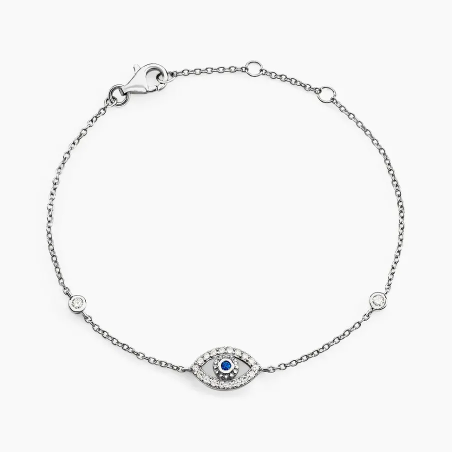 Bracelet Argent 925/1000 symbolique Oeil Oxyde + Petits Oxyde Clos 18cm