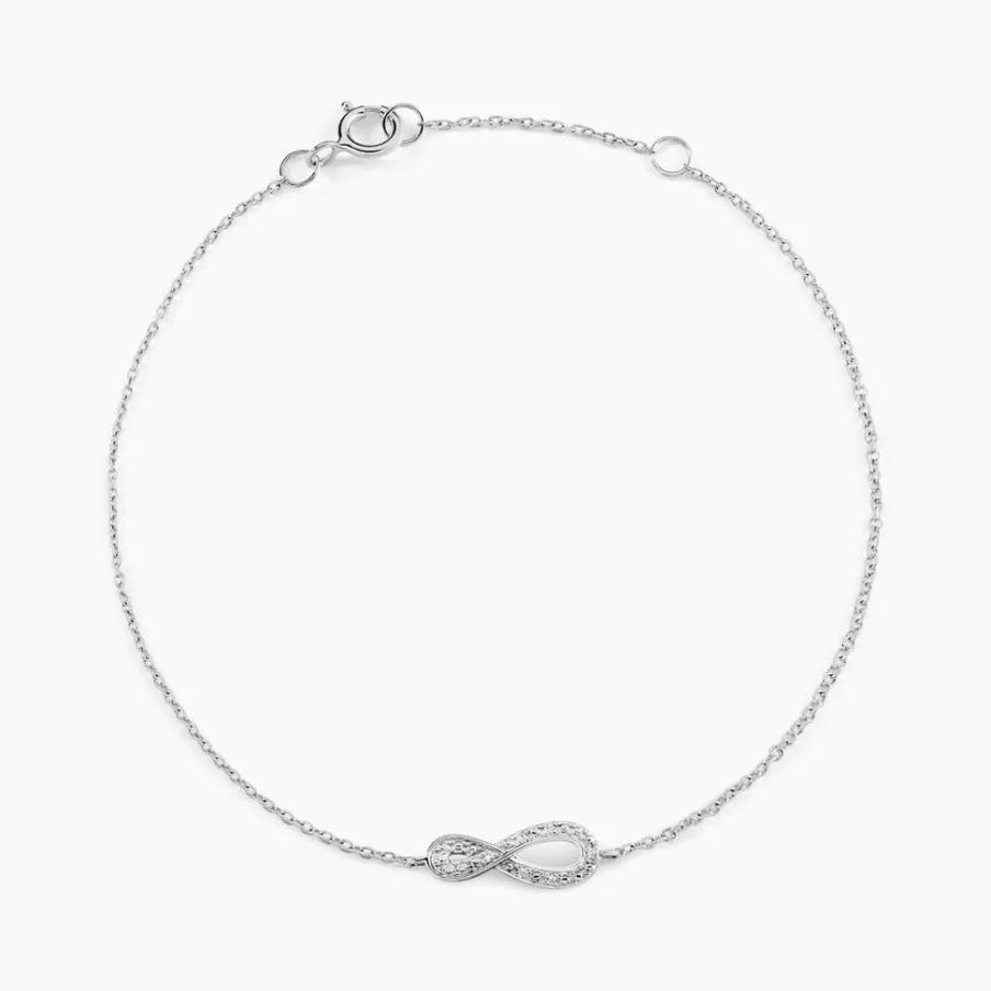 Bracelet Or Blanc 375/1000 Forme Infini Goutte Pavage Diamants Maille Forçat 18cm
