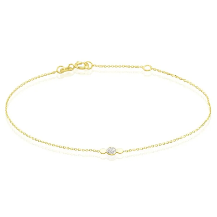 Bracelet Or Jaune 375/1000 Triple Pastilles Dont Une Glitter Argente Maille Jaseron 16+2cm