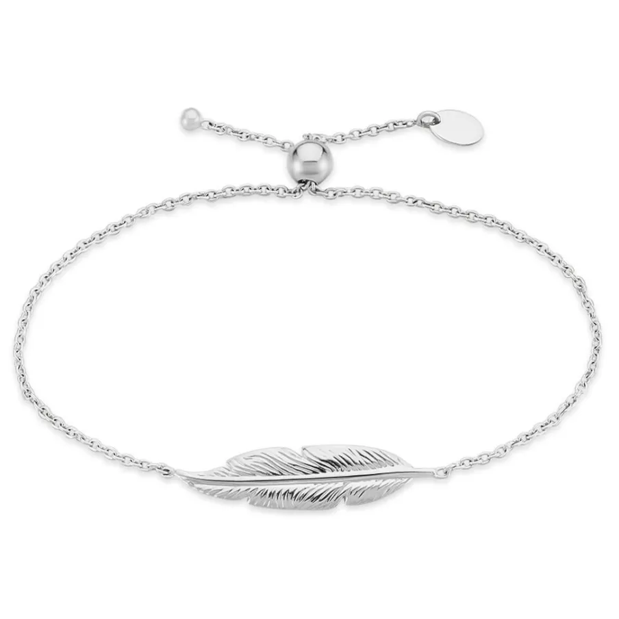 Bracelet Argent Blanc 925/1000 Plume Maille Forcat Ajustable