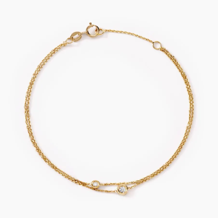 Bracelet Or Jaune 375/1000 Double Chaine Oxydes De Zirconium Clos 18cm