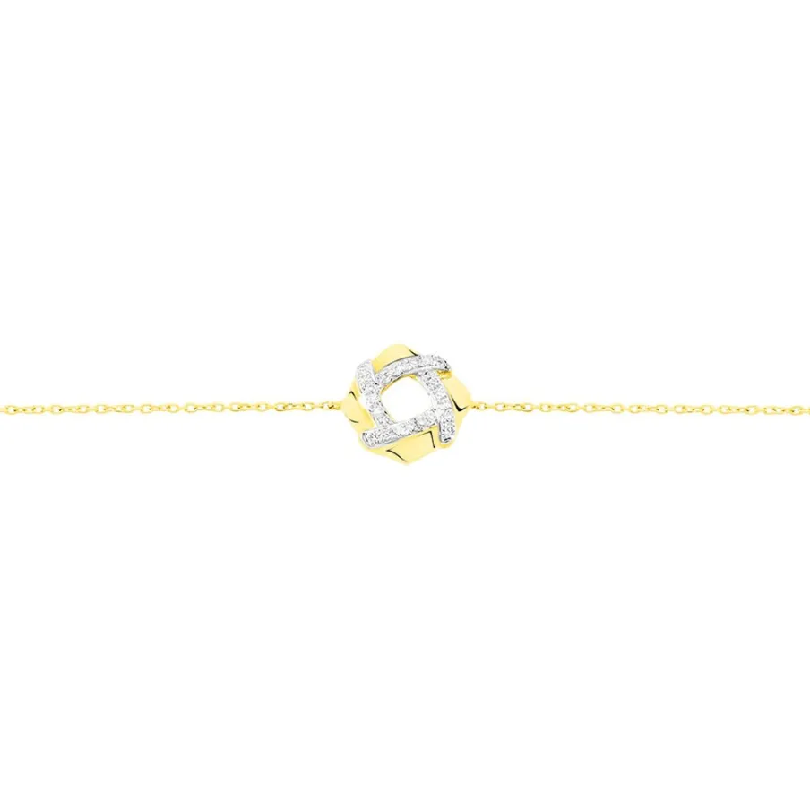 Bracelet Or Jaune 375/1000 Motif Cercle Ajoure Pavage Diamant 18.5cm