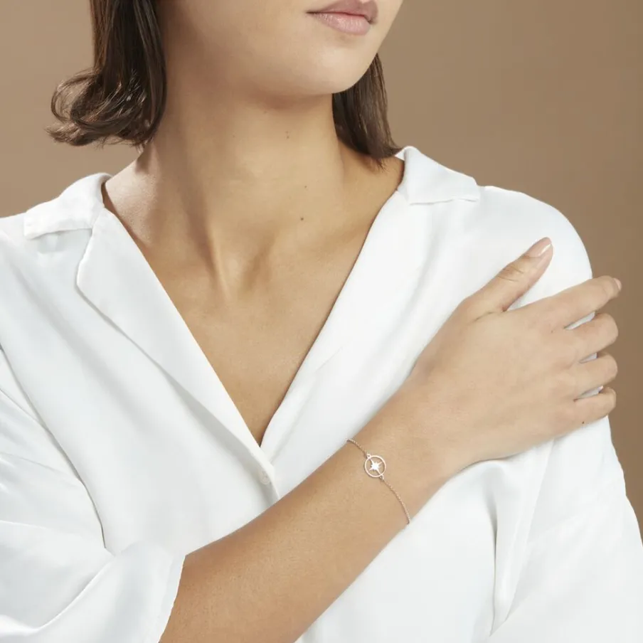 Bracelet Argent Blanc 925/1000 Etoile Cercle Ajoure Maille Forcat 18cm