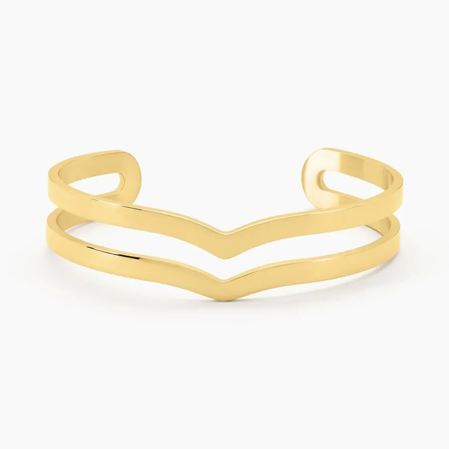 Bracelet Jonc Acier Inoxydable Jaune Ouvert Forme Double Aile De Mouette Ajouree