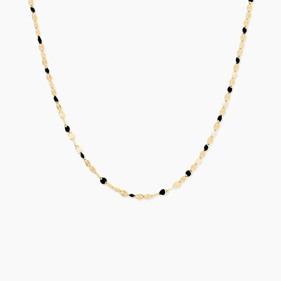 Collier Or Jaune 375/1000 Email Noir Maille Lumina 40+2cm