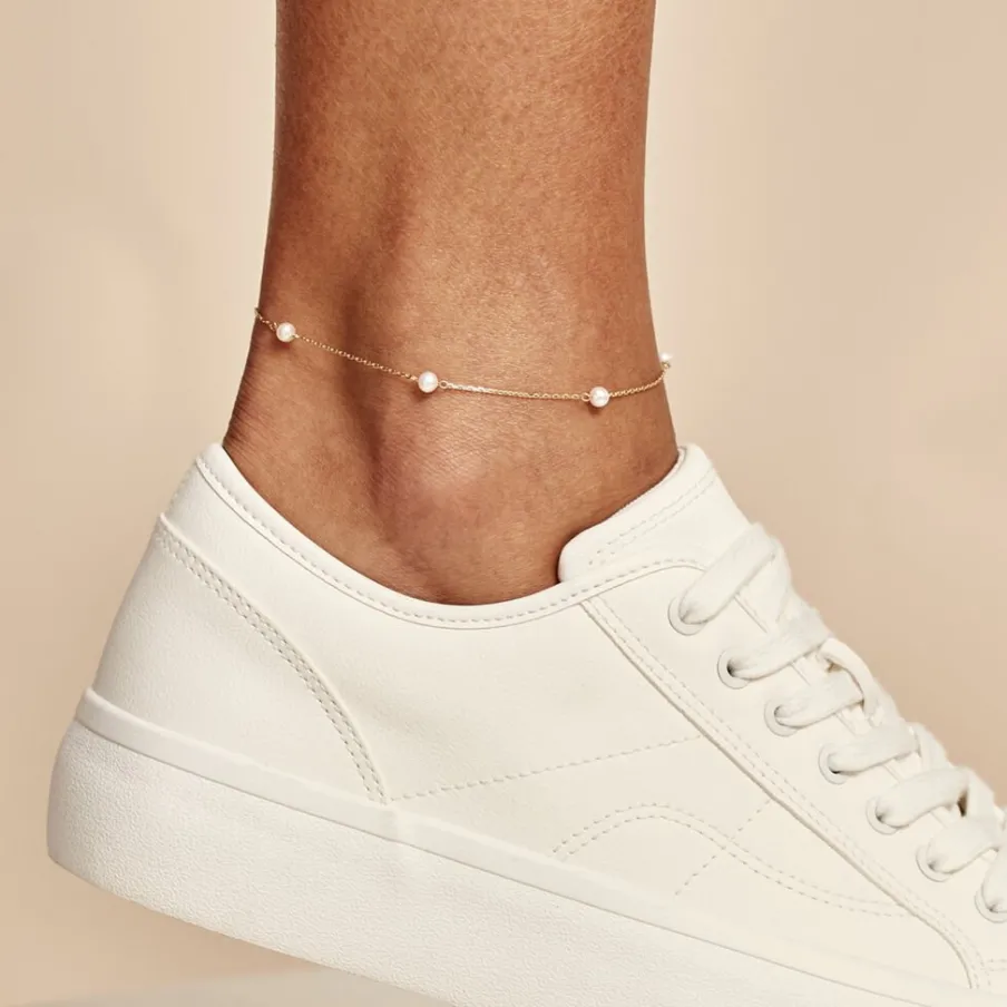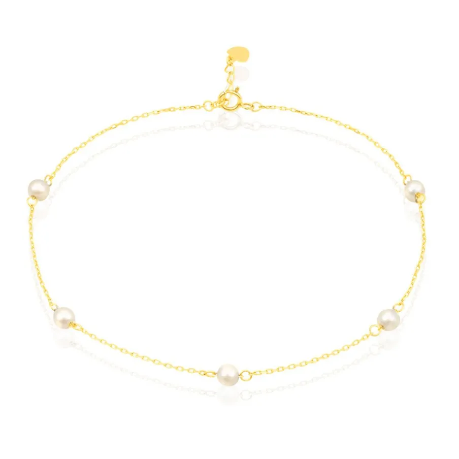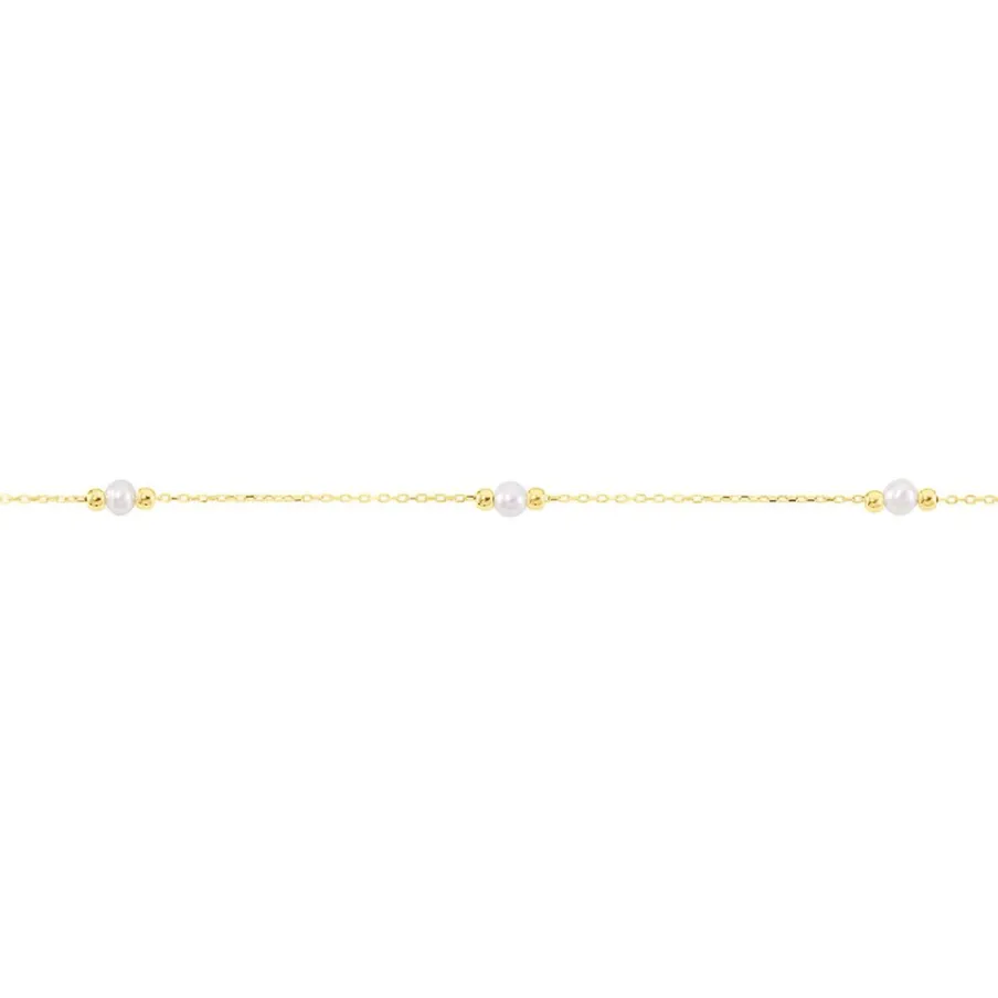 Chaine De Cheville Or Jaune 375/1000 5 Perles De Culture Maille Forcat 24cm