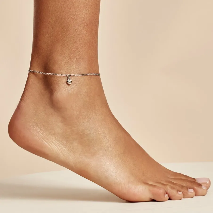 Chaine De Cheville Argent Blanc 925/1000 Motif Pampille C艙ur Maille Alternee 1/1 24cm