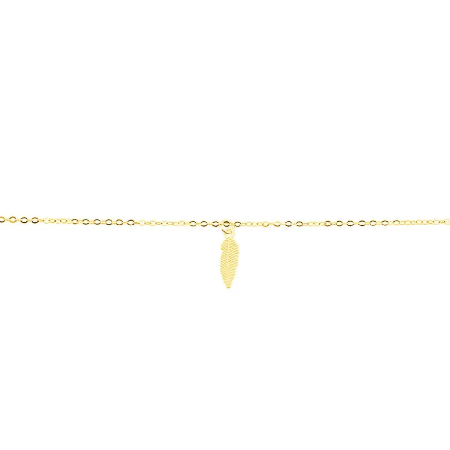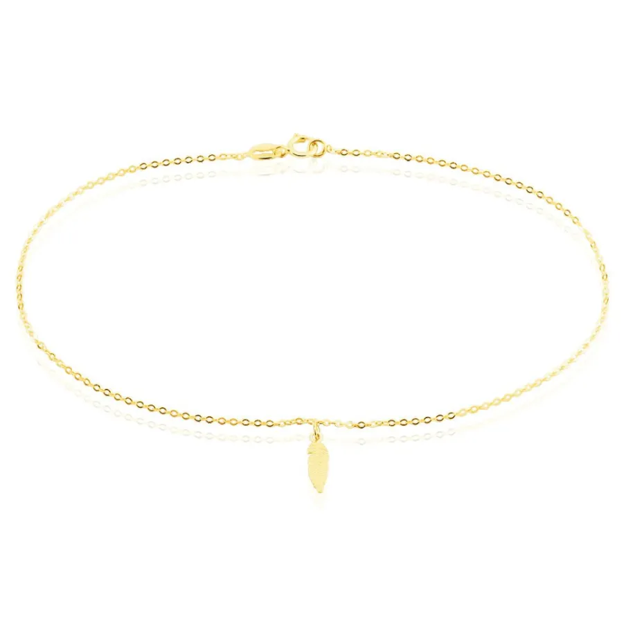 Chaine De Cheville Or Jaune 375/1000 Plume Maille Jaseron 24cm