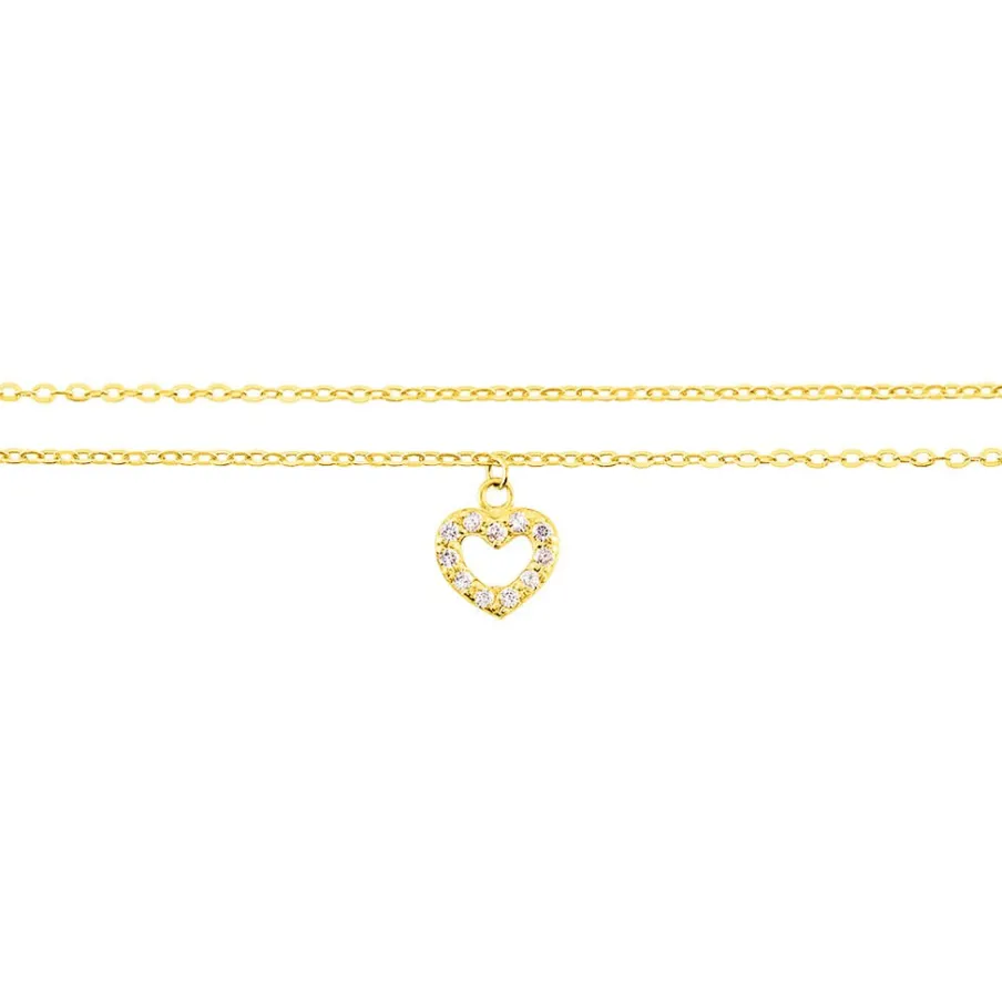 Chaine De Cheville Or Jaune 375/1000 Motif Coeur Double Maille Jaseron 24cm