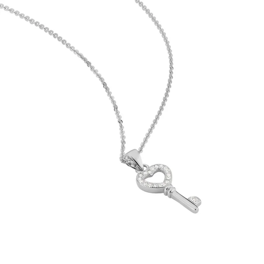 Collier Argent 925/1000 amy Pendentif Clef Avec Coeur Et Oxydes De Zirconium Maille Forcat