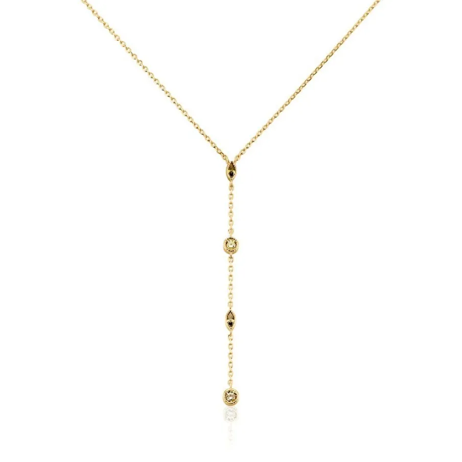 Collier Plaque Or Jaune Forme Cravate Oxydes De Zirconium Verts Navettes Et Ronds Serti Clos 45cm