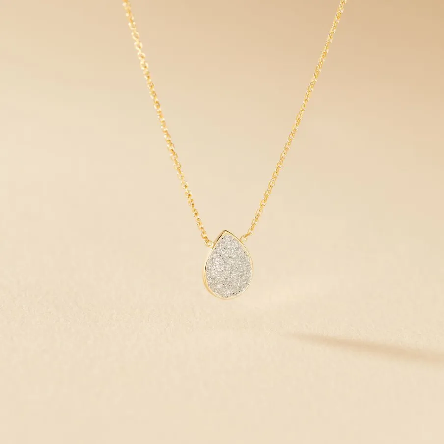 Collier Or Jaune 375/1000 Motif Goutte Glitter Silver Maille Jaseron 42cm