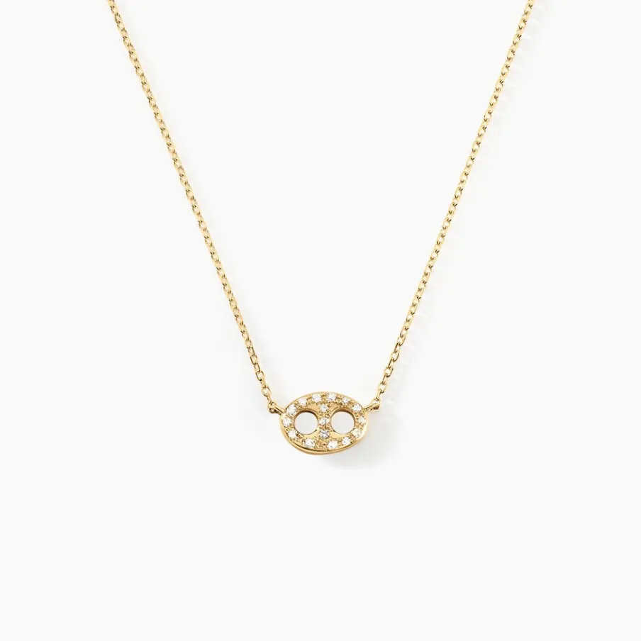 Collier Or Jaune 375/1000 Grain De Cafe Pavage Diamants Maille Forcat 40+2cm