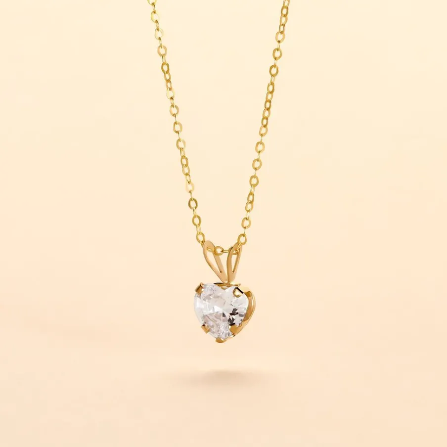 Collier Or Jaune 375/1000 Chaine Forçat C艙ur Serti 4 Griffes Oxyde De Zirconium 40+2cm