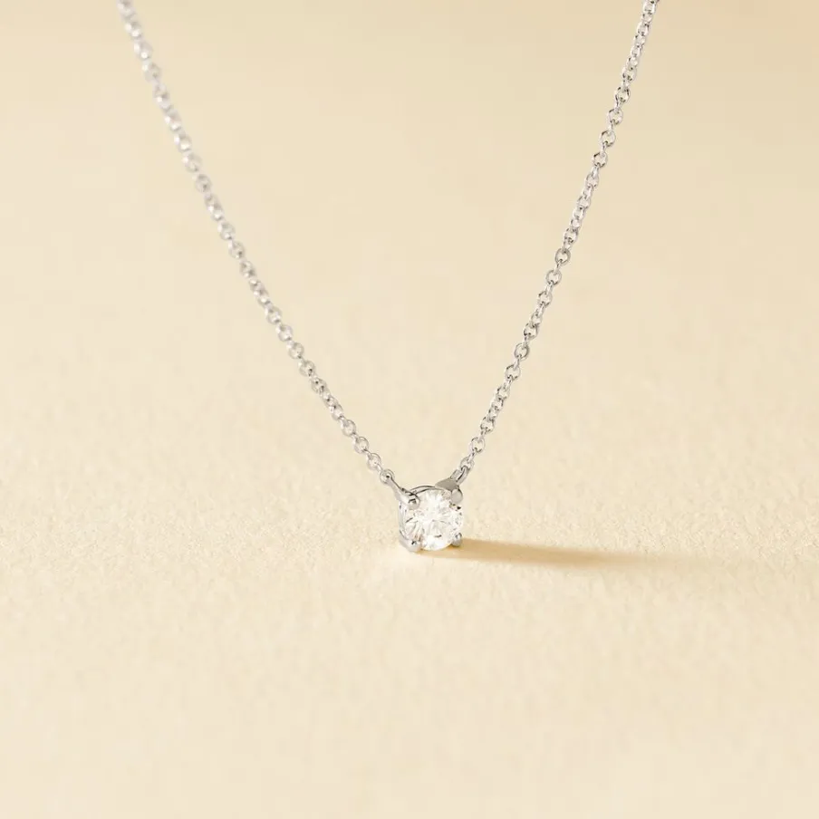 Collier Or Blanc 375/1000 Solitaire Diamant 0.20cts 42cm