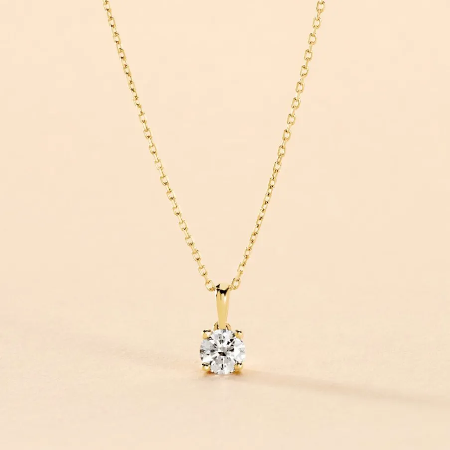 Collier Or Jaune 750/1000 Solitaire Diamant Synthetique 0.30cts 45cm