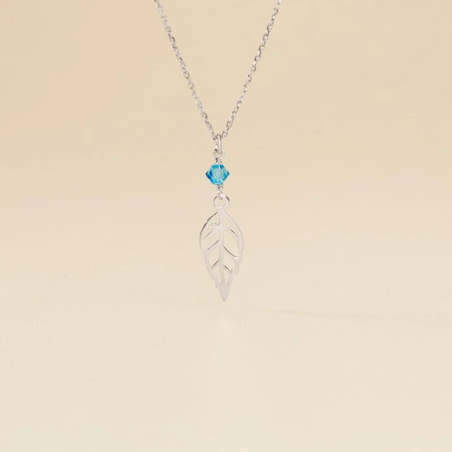 Collier Argent Blanc 925/1000 Feuille Pierres Bleues Synthetiques Maille Forçat 38cm
