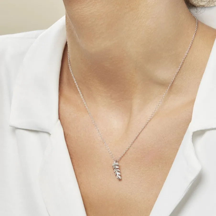 Collier Argent 925/1000 jade Feuille Micro Serti Oxydes De Zirconium Blancs Maille Forçat 38cm
