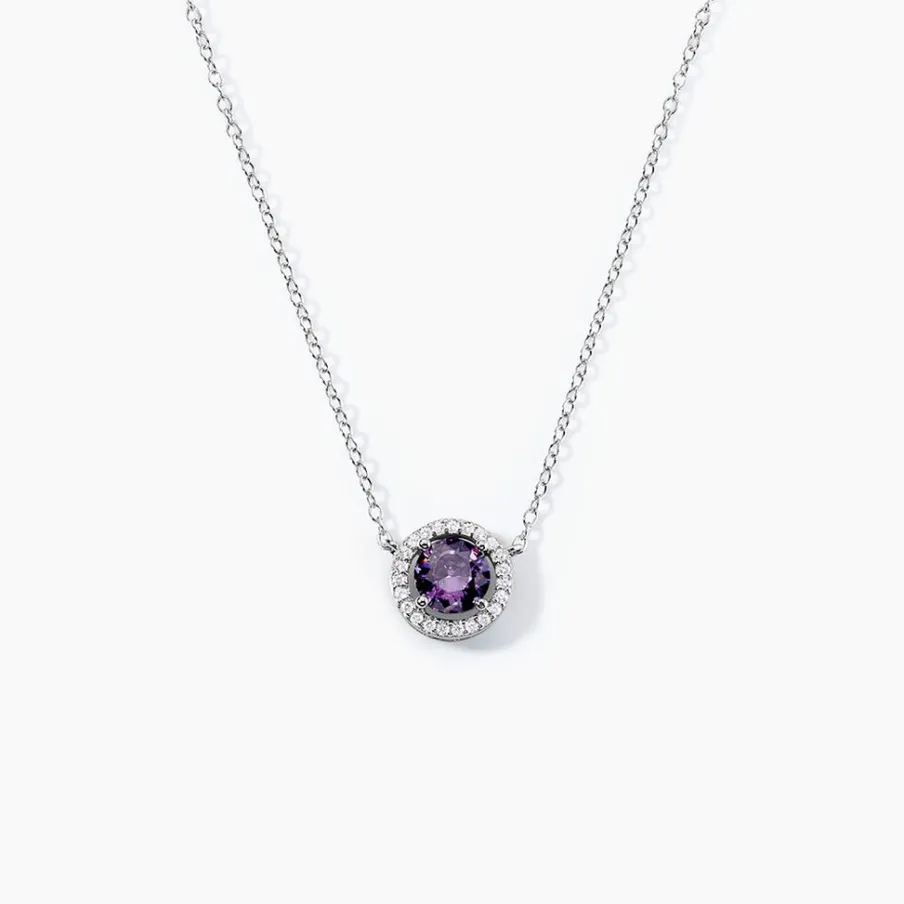 Collier Argent Blanc 925/1000 Oxyde De Zirconium Violet Maille Jaseron 45cm