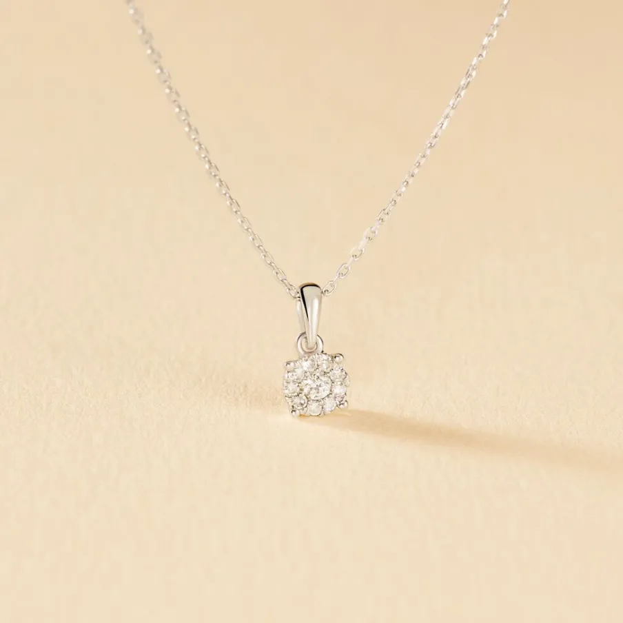 Collier Or Blanc 375/1000 Multipierre Diamants 42cm