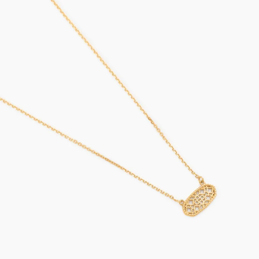 Collier Or Jaune 375/1000 Rectangle Filigrane Maille Jaseron 40+2cm
