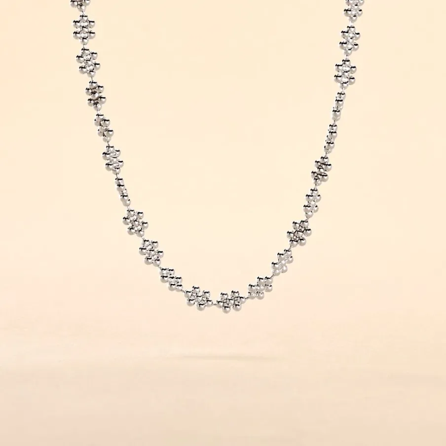 Collier Argent 925/1000 Fleurs Perlées 38cm