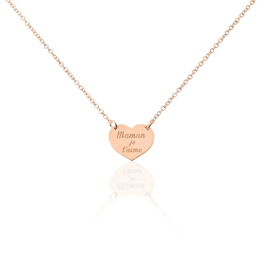 Collier Argent Rose 925/1000 Avec C艙ur Ecriture Maman Je T’aime 42cm