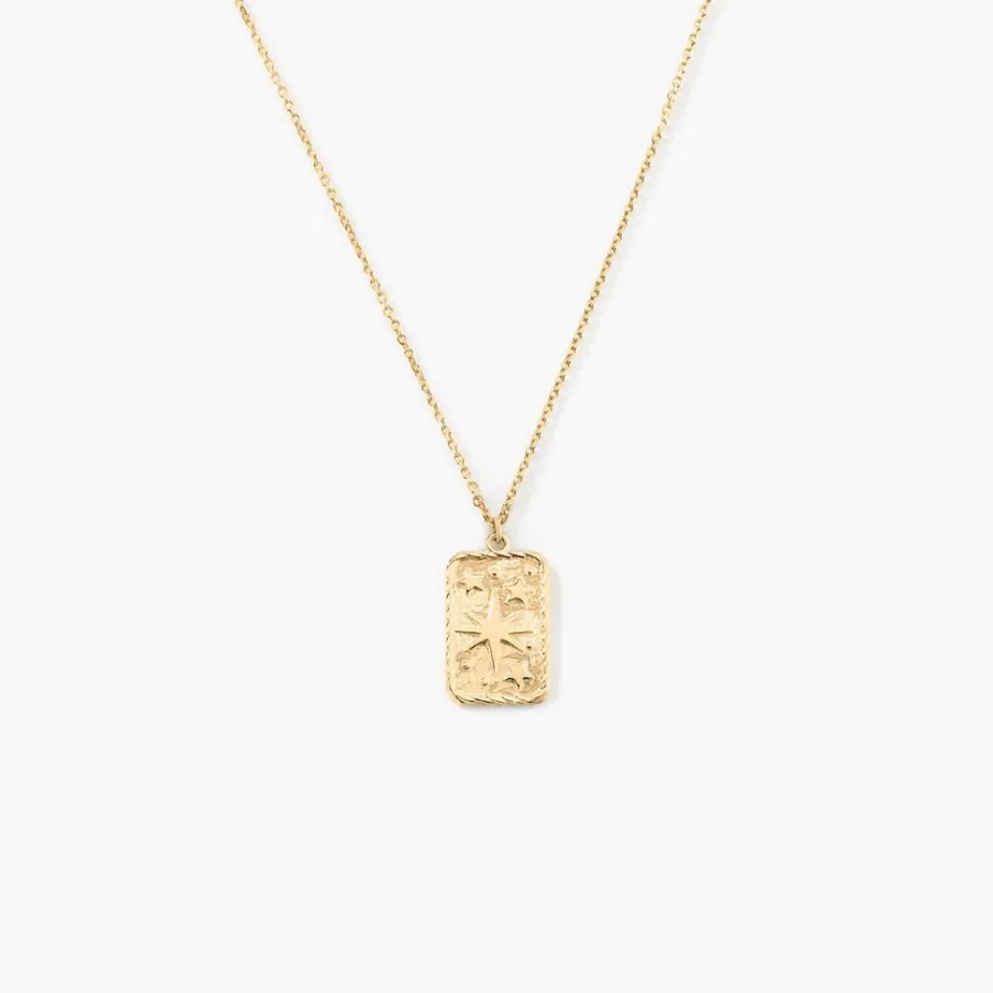 Collier Or Jaune 375/1000 Etoile Astrale Plaque Rectangle Maille Jaseron 40+2cm
