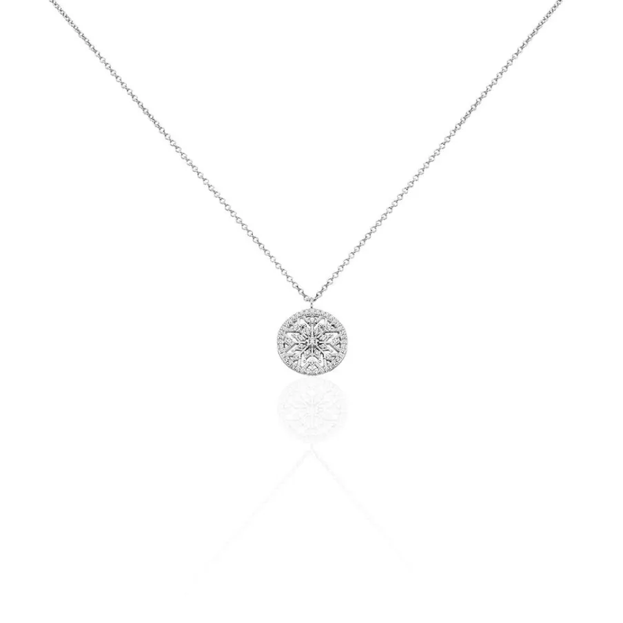 Collier Argent Blanc 925/1000 Forme Flocon De Neige Pastille Pavage Oxydes De Zirconium 48cm