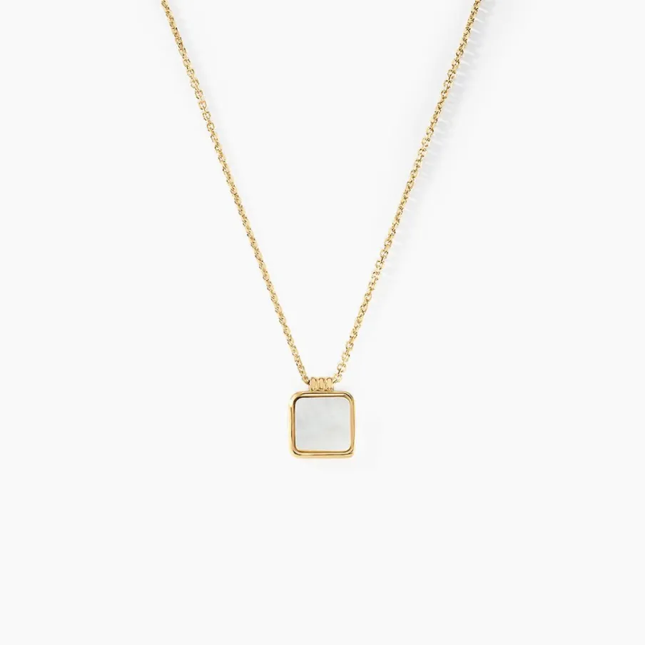 Collier Or Jaune 375/1000 Carre Nacre Blanche Serti Clos Maille Jaseron 40+2cm