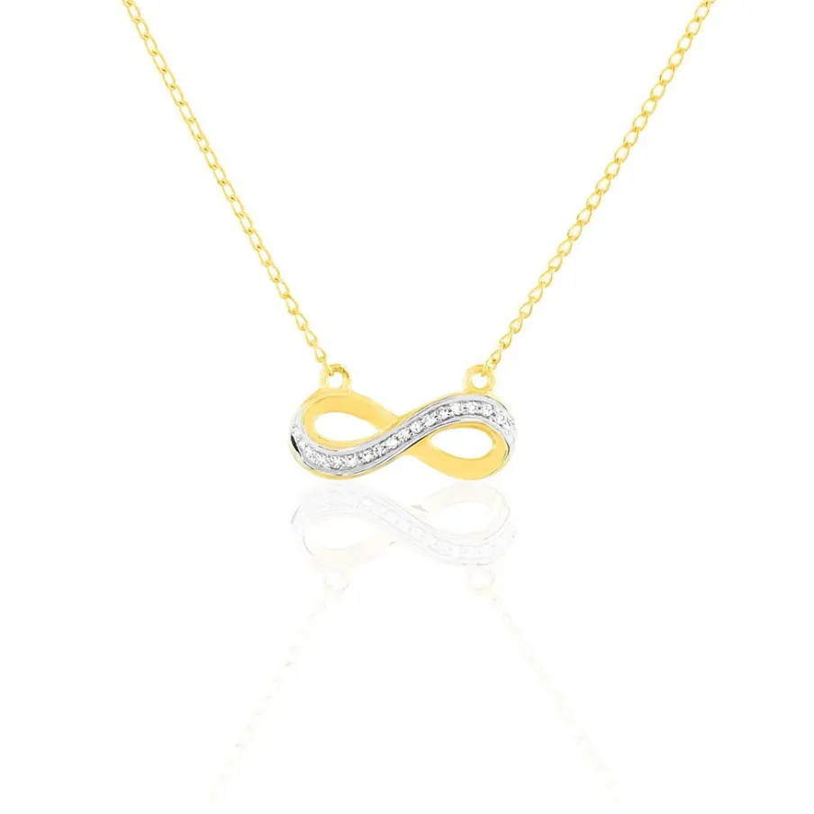 Collier Or Jaune 375/1000 Forme Infini Avec Pavage Diamants 42cm