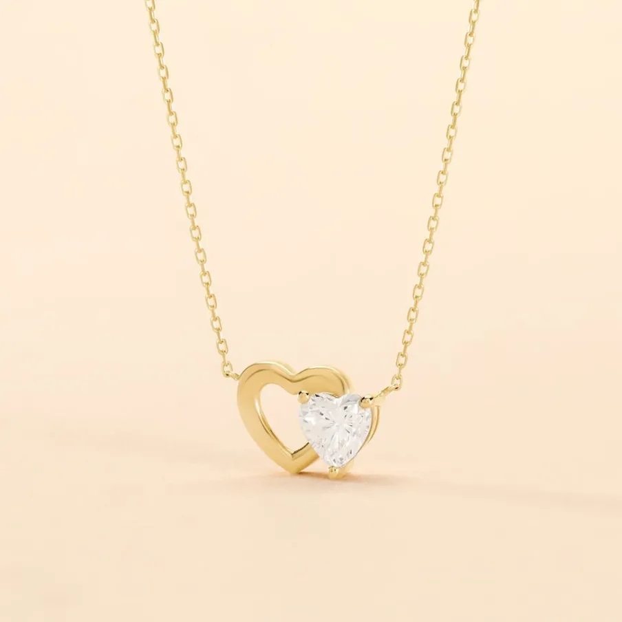 Collier Or Jaune 375/1000 Double C艙ur Maille Forçat Oxyde De Zirconium 38+4cm