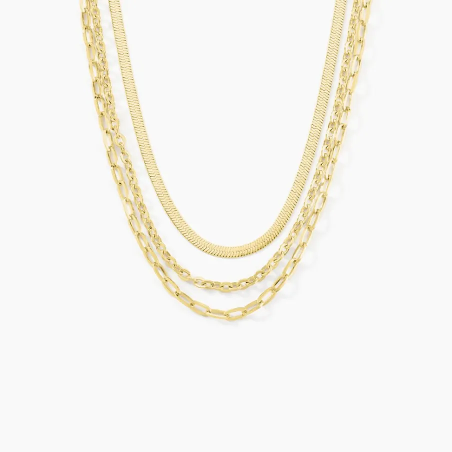 Collier Acier Inoxydable Jaune Triple Chaînes Miroir Cheval Et Forçat Ronde Largeur 7.4mm 42cm