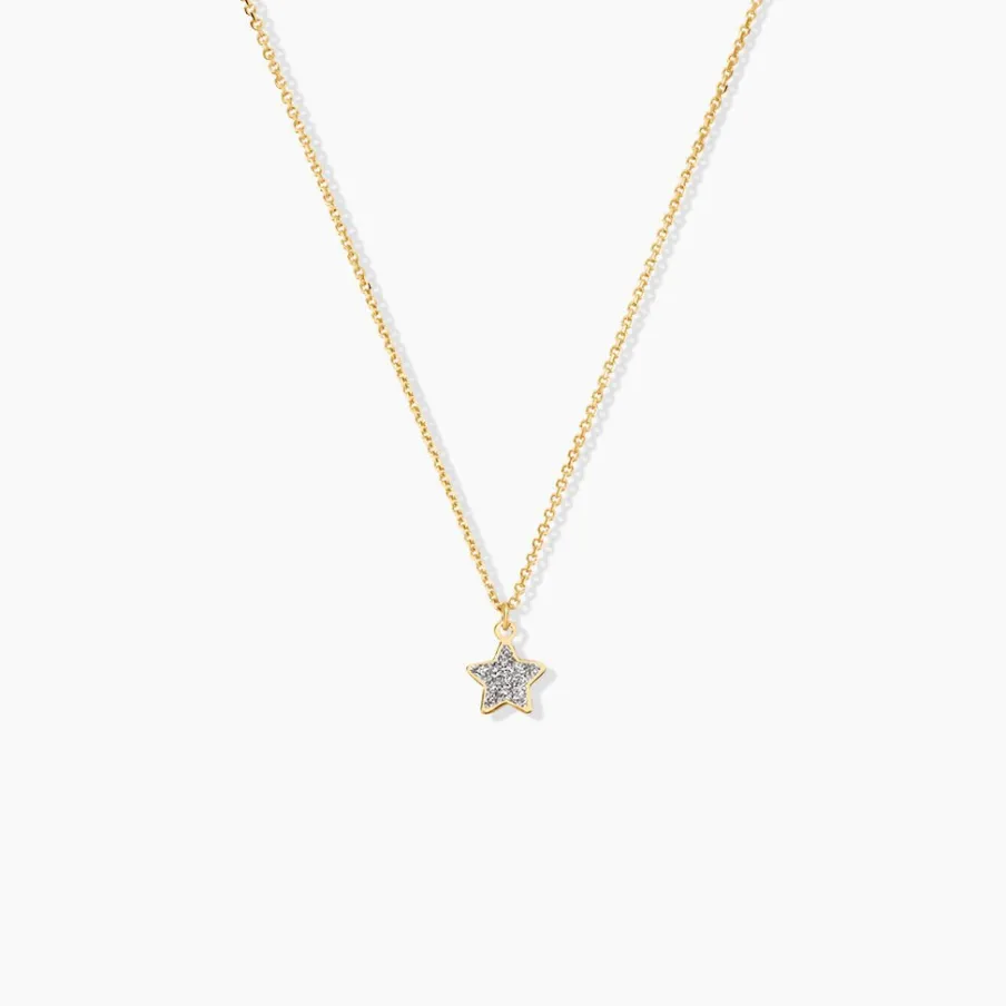 Collier Or Jaune 375/1000 Motif Etoile Glitter Silver Maille Jaseron 38cm